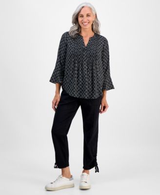 Women's Cotton Ruched 3/4-Sleeve Eyelet Top, Macy's Exclusive