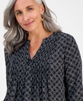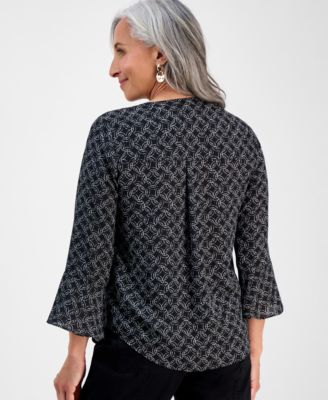 Petite Circle-Print Split-Neck Top, Exclusively at Macy's