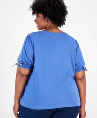 Plus Size Tie-Sleeve Crewneck Top