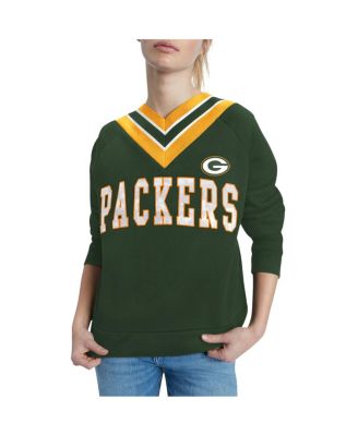 Women's Green Green Bay Packers Heidi Raglan V-Neck Sweater