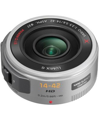 LUMIX G X Vario PZ 14-42mm f/3.5-5.6 Aspherical Lens for Micro Four Thirds, Silver, Bundle with 37mm Filter Kit, Lens Case, Cleaning Kit, Lens Cap Tether and Cleaning Cloth