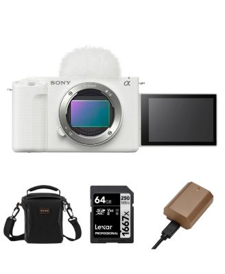 Sony ZV-E1 Full-Frame Interchangeable Lens Mirrorless Vlog Camera, White - Bundle with Alpine 120 Shoulder Bag, 64GB UHS-II SDXC Memory Card, Extra Battery
