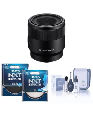 FE 50mm f/2.8 Macro Lens for Sony E, Bundle with Hoya 55mm UV+CPL Filter Kit, Cleaning Kit