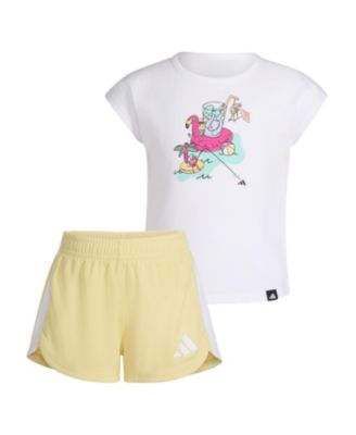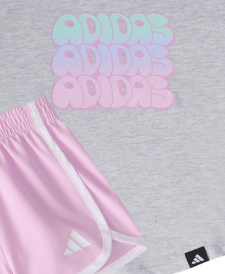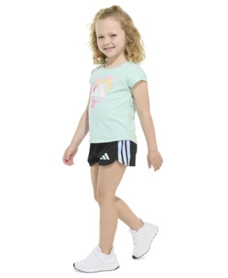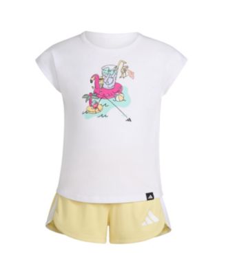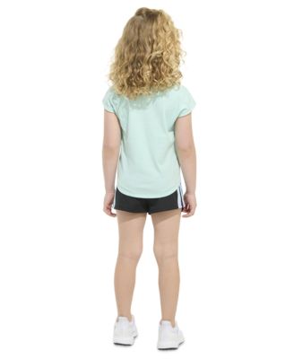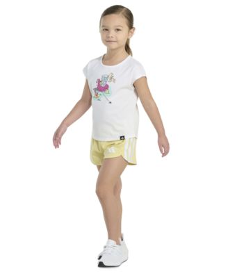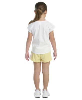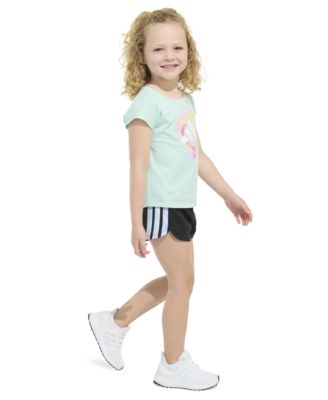 Toddler and Little Girls 2-Piece Short Sleeve Graphic T-Shirt and Mesh Short Set