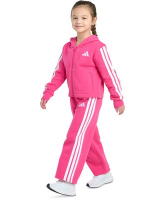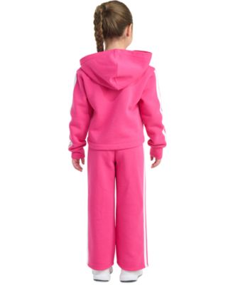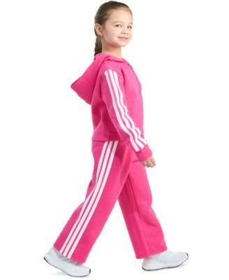 Toddler & Little Girls Full-Zip 3-Stripe Hooded Fleece Jacket & Wide-Leg Pants, 2 Piece Set