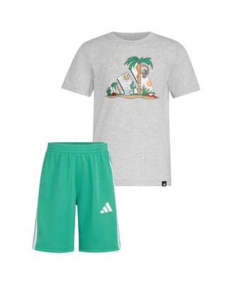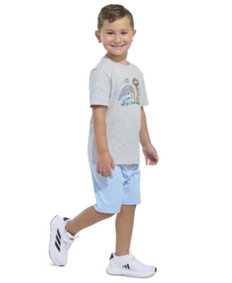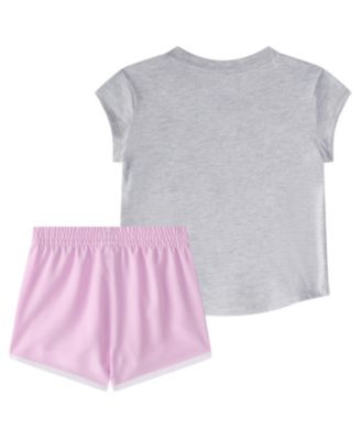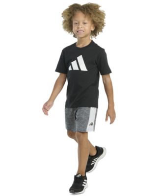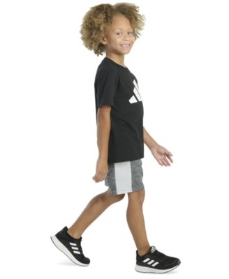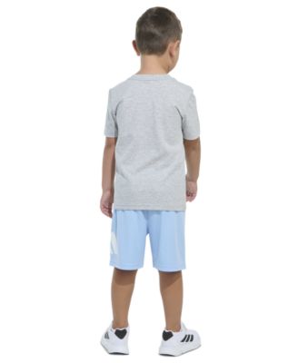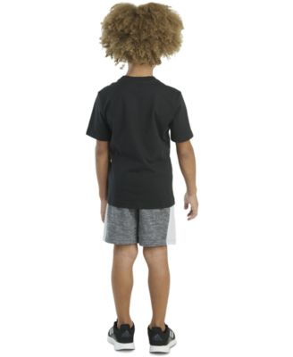 Toddler & Little Boys Short-Sleeve Heather T-Shirt & Elastic-Waistband Logo Shorts, 2 Piece Set