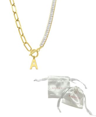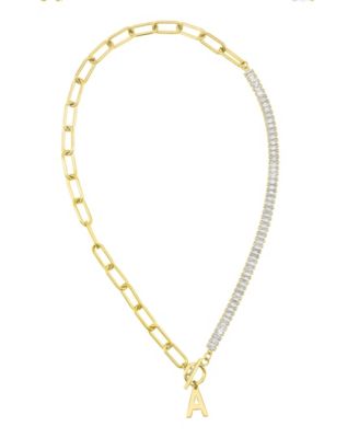 14K Gold-Plated Half Crystal and Half Paperclip Initial Toggle Necklace