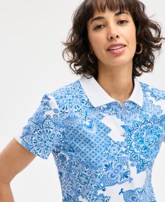 Women's Piqué-Knit Johnny Collar Shirt