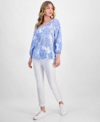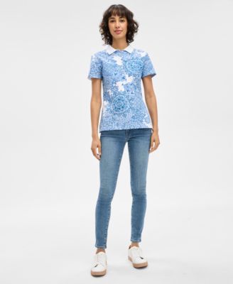 Women's Floral-Print Cotton Roll-Tab Shirt