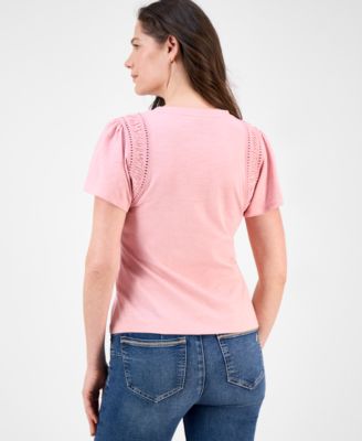 Women's Shirred Sleeve Top With Buttons