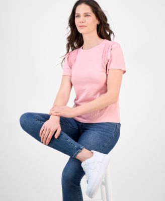 Women's Tie-Front Cotton Peplum Top