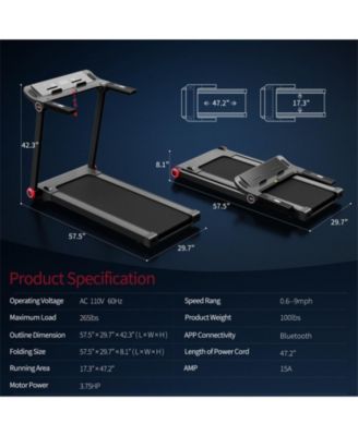 2.25HP Folding Treadmill with Bluetooth Speaker-Black