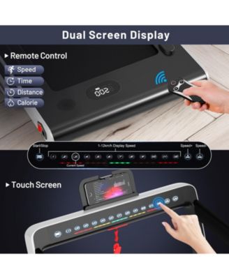 2 in 1 Under Desk Treadmill, 2.25HP Superfit Folding Treadmill with Touch Panel Control, App Control, Remote Control, Bluetooth Speaker, Foldable Walking Treadmills for Home Office