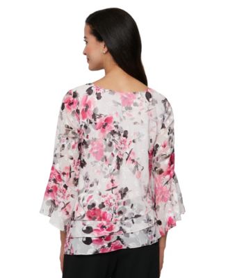Women's Printed Chiffon Burnout Blouse