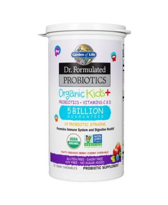 Garden of Life Dr. Formulated Probiotics Organic Kids Berry Cherry Shelf Stable, 30 Chewable Tabs