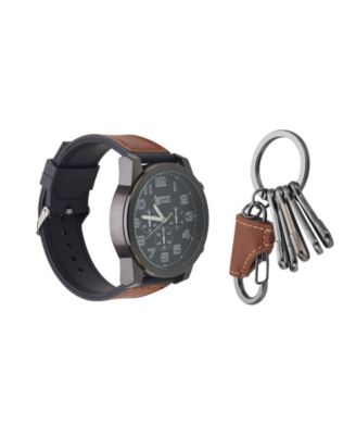 Men's Brown Faux-Leather Strap Watch 51mm Gift Set