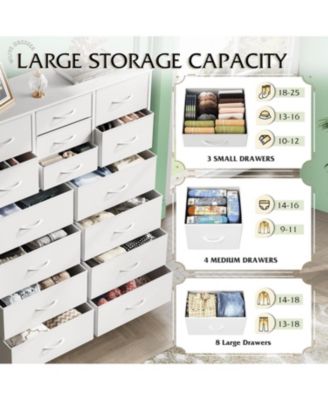 Tall Dresser for Bedroom Furniture Fabric Dressers Storage Tower with 15 Deep Drawers Dresser for Closet Hallway Entryway Office Storage Tower with Cabinet Metal Frame Wooden Top