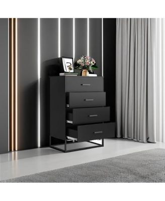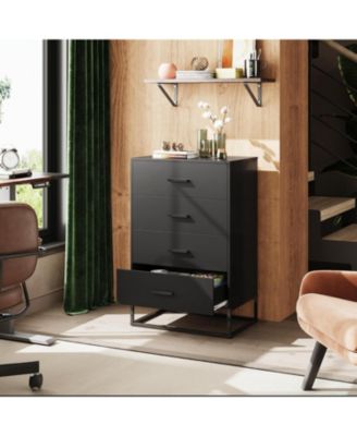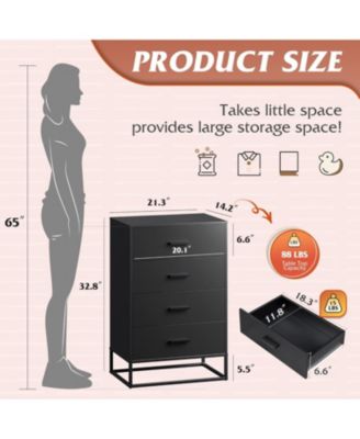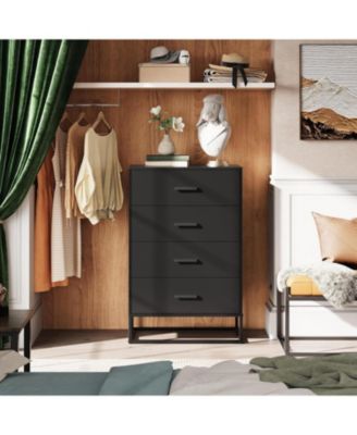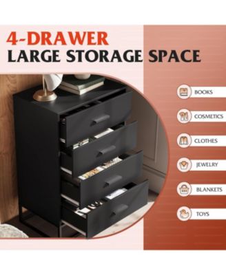 Dresser for Bedroom with 4 Drawers Nightstand Chest of Drawers Tall Dresser Drawers with Sturdy Metal Frame for Hallway Living Room Closet