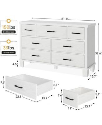 Dresser for Bedroom, 7 Drawers Modern Wood Dresser, 51" Wide Chest of Drawers Closet, Wooden Dresser Organizer ,White