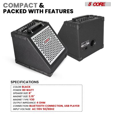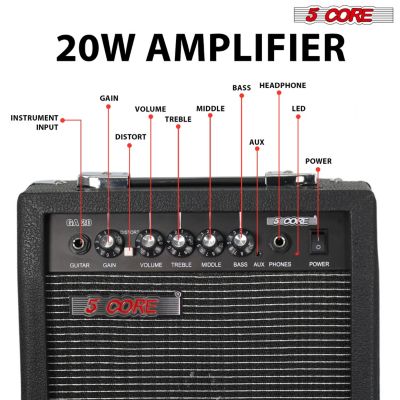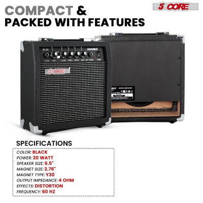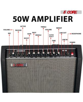 Guitar Amp 50 Watt Electric Amplifier w Built in 8" Speaker Portable Mini Amps w Aux