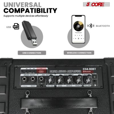 5-Channel Audio Amplifier - Multi-Source 1/4” Audio/Microphone Input, USB/SD Readers, FM Radio, Built-in Bluetooth for Wireless Audio Streaming