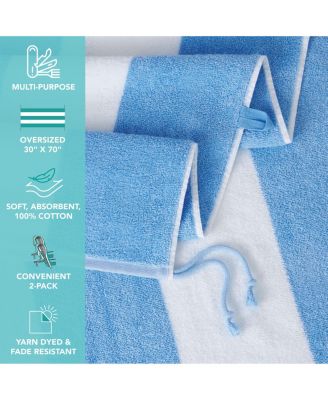 Cabo Cabana Beach Towel (4-Pack, 30x70 in.), Soft Ringspun Cotton, Alternating Stripe Colors, Oversized Cabana Pool Towel
