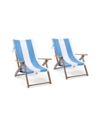 Chaise Lounge Cover (Pack of 2, 30x85 in.), Cotton Terry Towel with Pocket to Fit Outdoor Pool or Lounge Chair, White with Colored Stripes