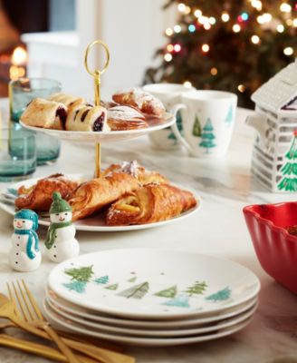 Holly Village Ceramic Dessert Plates, Set of 4