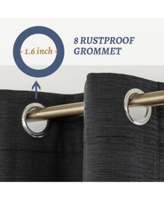 100% Blackout Linen Texture Curtains with Grommet Top, 2 Panels