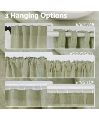 Short Linen Blend Light Filtering Curtains for Living Room (2 Panels), 52"x54"