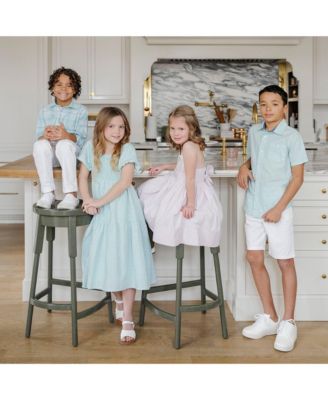 Girls' Linen Smocked Short Bubble Sleeve Dress, Toddler