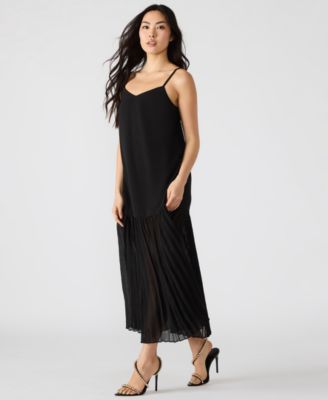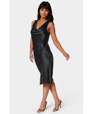 Women's Drape Front Sleeveless Satin Midi Dress