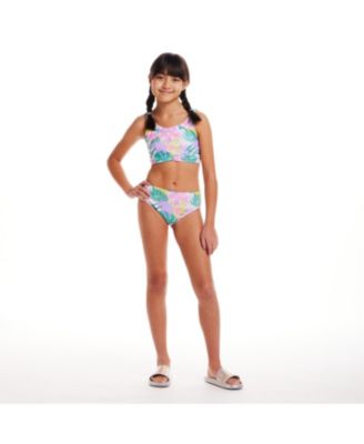 Toddler/Child Girls Palm Tree Print Rib Tankini w/Braided Straps