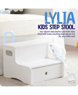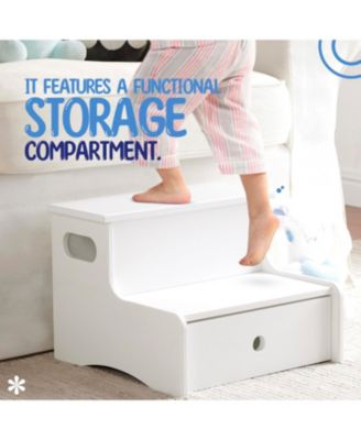 Wooden Toddler Step Stool for Kids with Storage for Bedroom, Bathroom & Kitchen