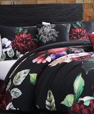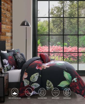 Black Night Poppies Bedding 100% Cotton Sateen 5 Piece Queen Size Reversible Comforter Set