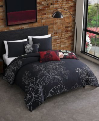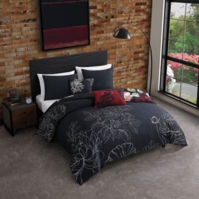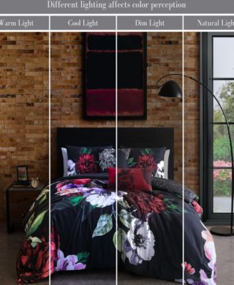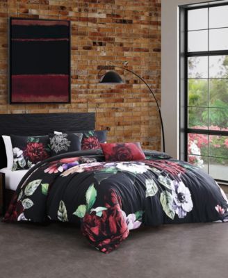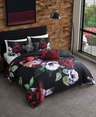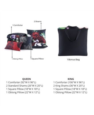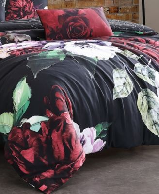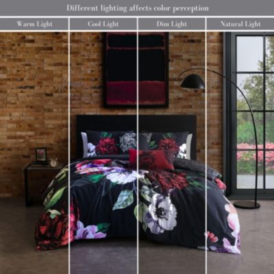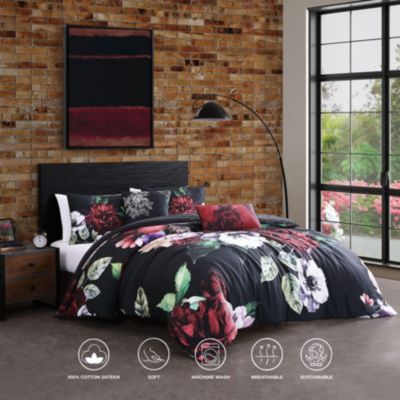 Black Night Poppies Bedding 100% Cotton Sateen 5 Piece King Size Reversible Comforter Set