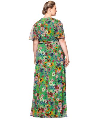 Betsy & Adam Plus Size Floral-Print Halter Gown