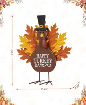 12.25"H Thanksgiving Wooden Metal Turkey Table Decor