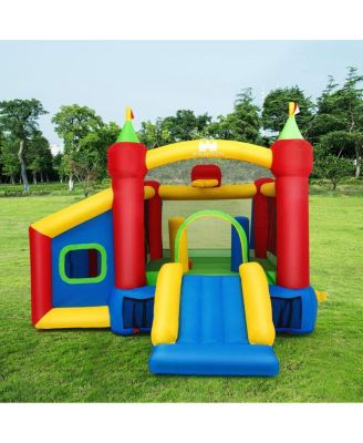Inflatable Bounce House Bouncy Castle w/Slide & Basketball Rim Blower Excluded