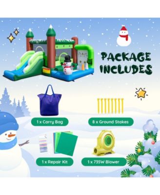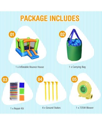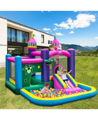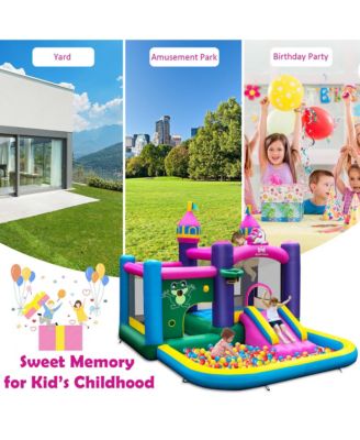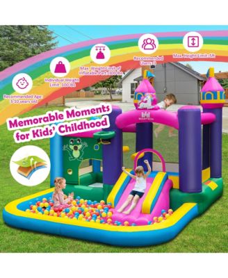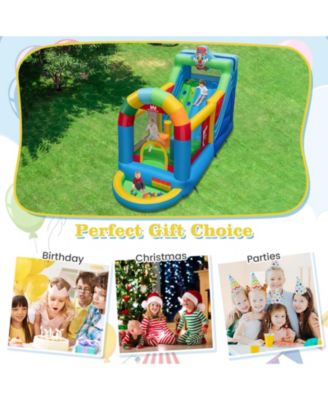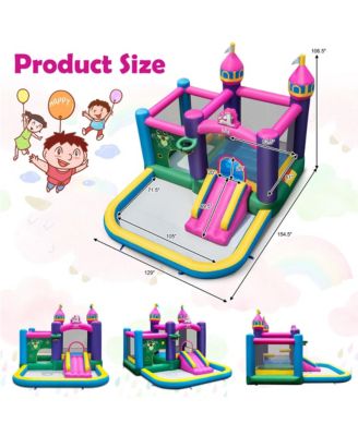 Kids Inflatable Bounce Castle 7-in-1 Jumping House with Long Slide and 735W Blower