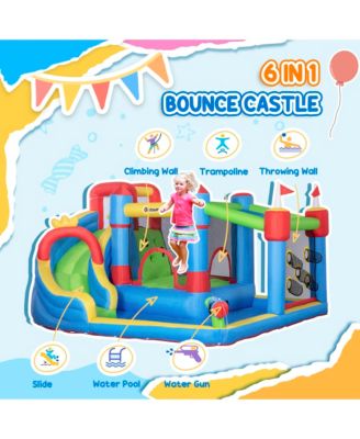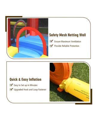 Inflatable Bounce House with Climbing Wall & Basketball Hoop Fun Outdoor Playset for Kids