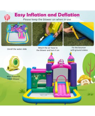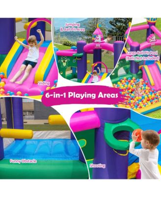 Inflatable Unicorn-themed Bounce House 6-in-1 Kids Bounce Castle w/ 735W Blower