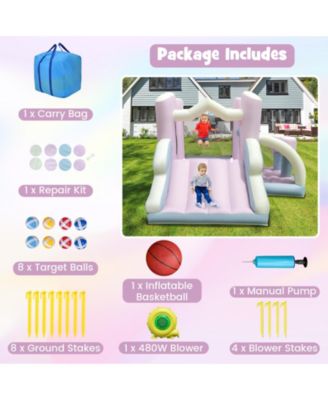 Kids Bounce House with Slide and Basketball Rim Bouncy Castle for Party with 480W Blower