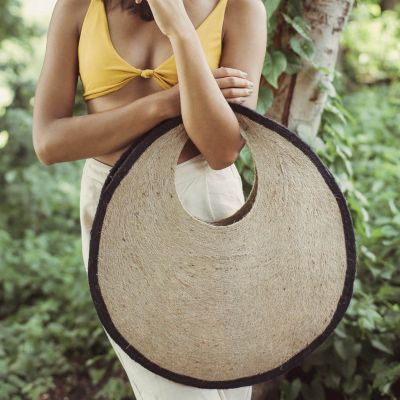 HALO SOLO Jute Straw Bag In Black And Natural