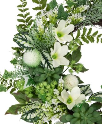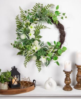 Hellebores and Ivy Artificial Spring Floral Wreath, 24"