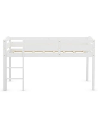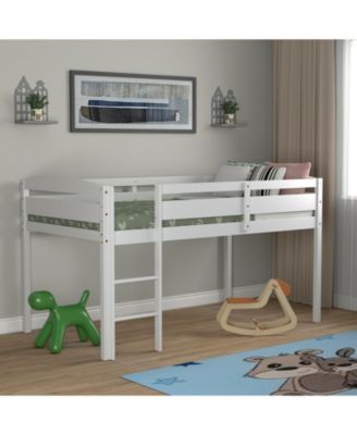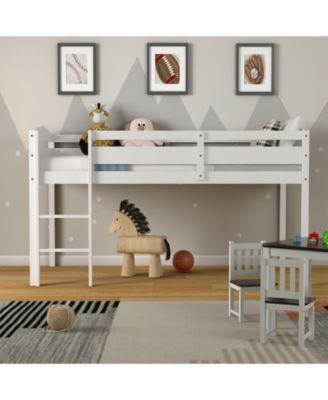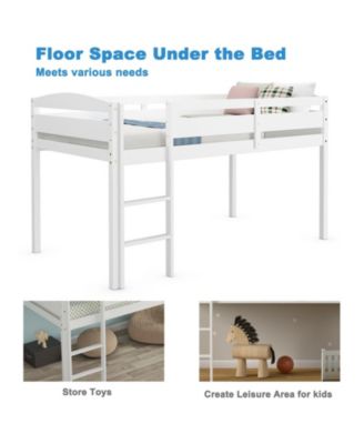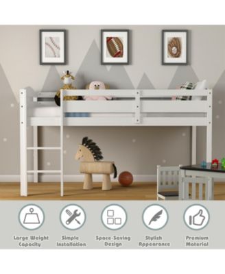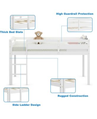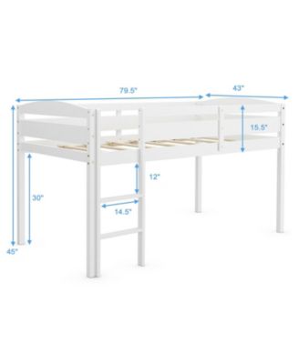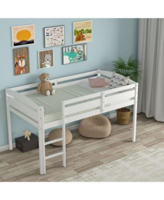 Wooden Twin Low Loft Bunk Bed with Guard Rail and Ladder