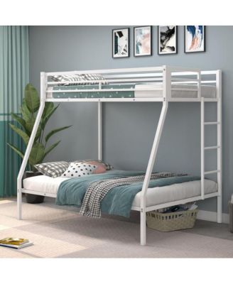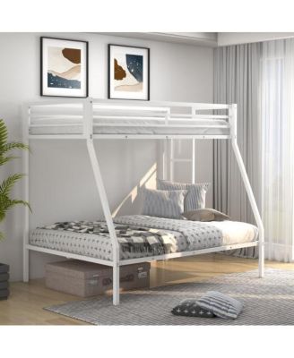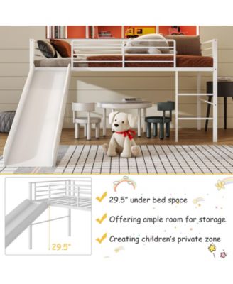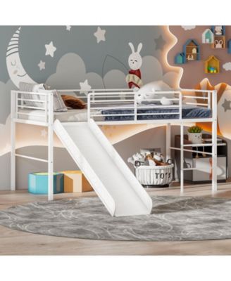 Twin Metal Loft Bed with Slide Safety Guardrails and Built-in Ladder