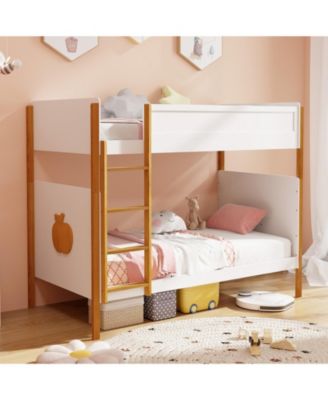 Twin Size Bunk Bed with High Guardrails and Integrated Ladder