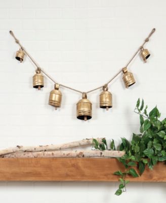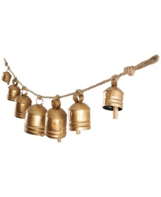 Metal Tibetan Inspired String Hanging Decorative Cow Bell with Jute Hanging Rope, 53" x 5" x 7"