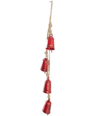 Metal Tibetan Inspired String Hanging Decorative Cow Bell with Jute Hanging Rope, 52" x 4" x 8"